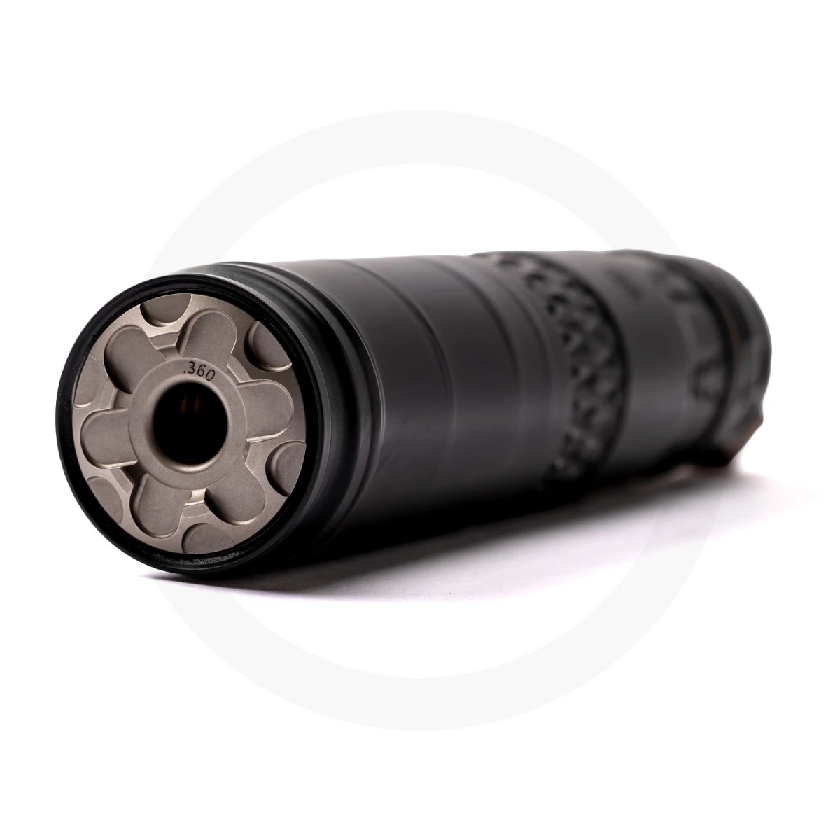 It’s the Swiss Army Knife of the silencing world; the Alaskan 360 from Rugged Suppressors is a top-of-the-line multicaliber suppressor with outstanding flexibility. Plan your next expedition with the magnum-rated Alaskan 360: featuring a .36cal bore that affords you the ability to shoot the Alaskan360 across a wide range of your favorite calibers, from pistols, subguns up to 9mm, and rifles, like the 8.6BLK, .338 LAPUA, and .300RUM. The new Rugged silencer is an effective 5.56 suppressor, a 9 mm suppressor, and an excellent rifle suppressor for a 308. Weighing a mere 11.8 oz. and just 7.5” (including its mount), the Alaskan360 goes beyond a 308 suppressor, tames the highest pressure rounds, and is fully auto-rated.